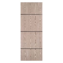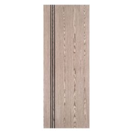 Emma, the art of subtle sophistication. This interior door slab is crafted from a solid pine core, wrapped in natural wood veneer that beautifully captures the depth and character of real wood. What sets Emma apart is her signature aluminium stripes, available in Gold, Silver, and Black, a delicate yet defining detail that adds personality and refinement to any space. Whether your home leans toward luxury, minimalism, natural warmth, or a modern edge, Emma blends in, elevating every room with ease.