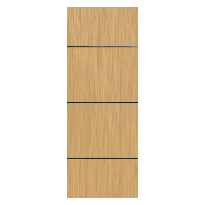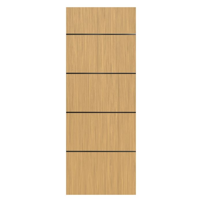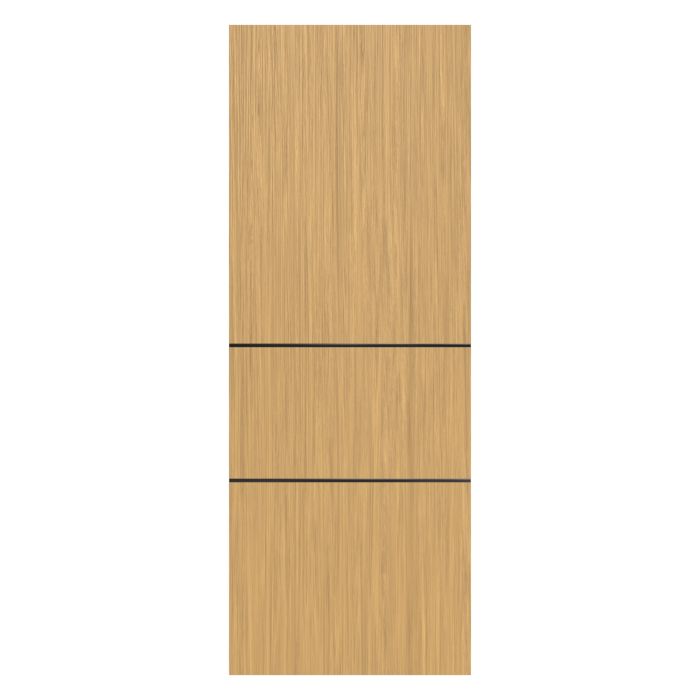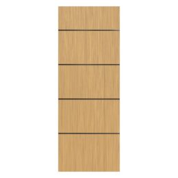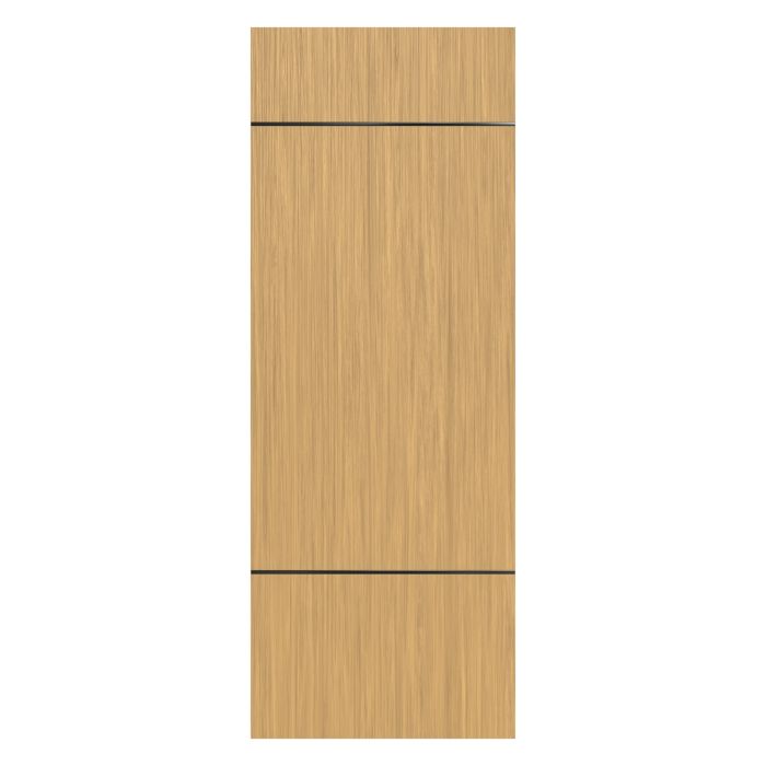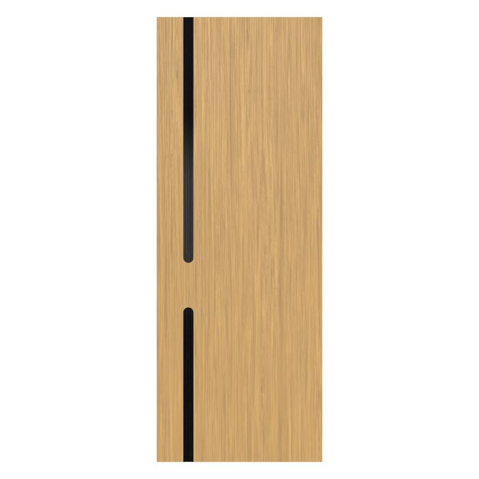 Let warmth and personality into your home with the irresistible Linda interior slab door. It is designed with natural wood veneer that shines in three oak tones, White Oak, Sandy Oak, and Dark Oak bring a timeless, lived-in charm that makes every space feel like home. On the other hand, the aluminium inserts, available in a wide range of versatile finishes from glossy to matte, offer the perfect opportunity to express your personal style down to the finest detail. Solid pine core construction means Linda is built to ensure the demands of a busy household with ease. Linda can fill your space with warmth and beauty.