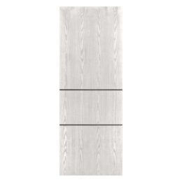 Elevate your home with the beautiful Virginia door. This interior slab features a solid pine core, ensuring durability and a perfect fit for any area. It is wrapped in natural wood veneer available in stunning shades of Sandy Oak, White Oak, and Dark Oak. The door slab is accented with three small aluminum stripes, adding a modern touch to otherwise plain spaces. Virginia is an ideal choice for ordinary rooms, helping to enhance and uplift their look.
