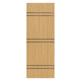 Diana is effortless simplicity, designed for every space and every vision. This interior door slab is built on a solid pine core, wrapped in natural wood veneer that captures the authentic warmth and texture of real wood. Available in three refined tones: White Oak, Sandy Oak, and Dark Oak. Diana adapts gracefully to any interior palette. Two aluminium stripes in Gold, Silver, or Black add a clean, considered accent, complementing minimal spaces with a quiet touch of character. Understated, versatile, and beautifully crafted, Diana belongs everywhere.