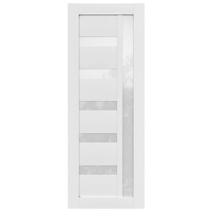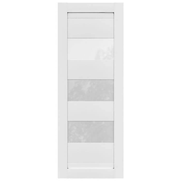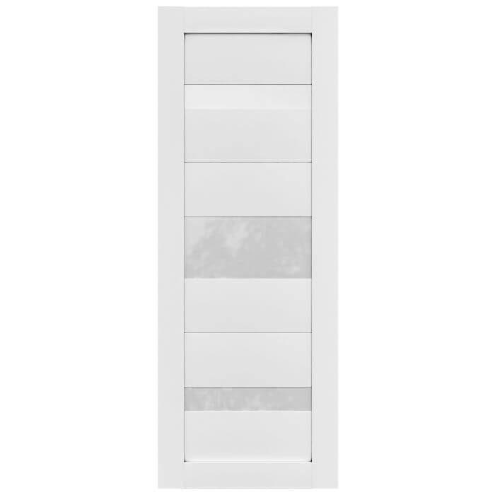 Alexis redefines modern interior style. The white laminate finish creates a clean canvas, while the horizontal polycarbonate solid-glass panels add design depth. This door is built with a stile-and-rail pine core for reliable durability, handling everyday use without compromise. Alexis works well in various configurations, including barn door, swing, and pocket. The straightforward design complements contemporary interiors that prioritize simplicity and function.