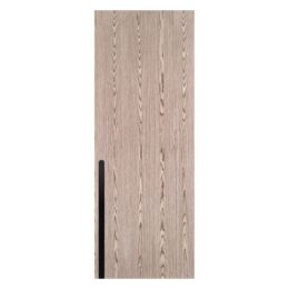 Evelyn redefines interior elegance. It is an interior door slab, built with a solid pine core and wrapped in natural wood veneer. It is available in three beautiful, natural tones: White Oak, Sandy Oak, and Dark Oak. Complemented by aluminium inserts in six curated finishes, she seamlessly blends natural warmth with contemporary detail. Evelyn is simple in concept, but striking in presence.